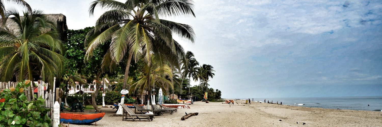 Pense em uma praia longa e quase deserta, entre dois rios, coroada por coqueiros que balançam ao ritmo da brisa do mar. Suas águas, normalmente agitadas, são o oposto da vida local, que segue a passos lentos e preguiçosos, entre ruas de terra e a areia da praia.